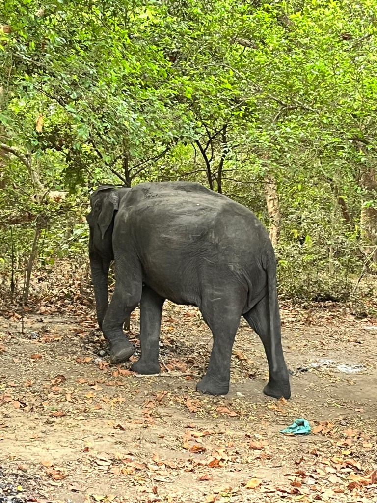 But it was the sight of a lone elephant, foraging near Kudumbigala Devalaya, that stopped us cold its trunk curled around something, not foliage, but plastic.
