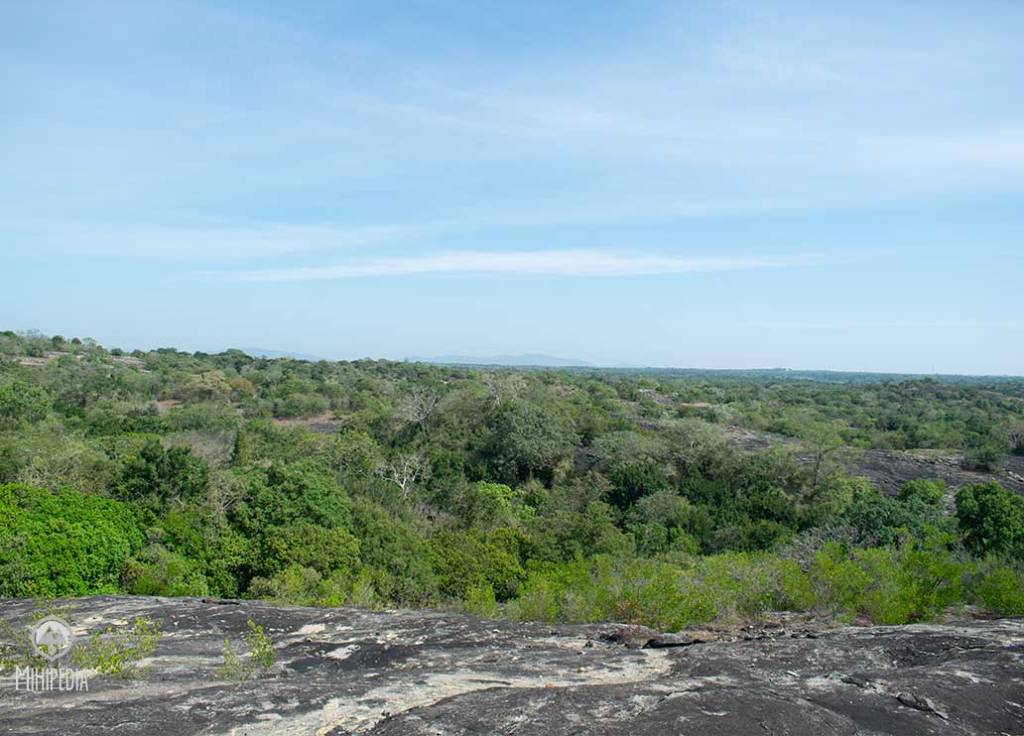 Rajagala, “the Monarch’s Rock” is no ordinary mountain. Spread across more than 1,000 acres, it is one of Sri Lanka’s largest yet least-known archaeological sites, often called the “forgotten Mihintale.” Over 600 ruins lie scattered across its slopes: crumbling stupas, guardstones carved with faded patterns, meditation caves with drip-ledged entrances, and Brahmi inscriptions etched into stone, many still legible after two millennia.