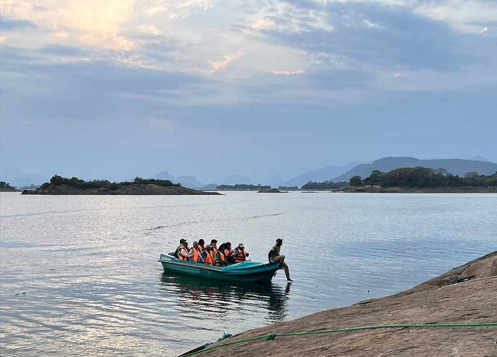 We boarded two boats that skimmed the still water beneath the still simmering afternoon. And then, on the far shore, the elephants emerged. A small herd grazed lazily at the water’s edge, calves obediently following their mothers, while lone elephants silently foraged away from the herds. Watching them from the heart of the reservoir, it felt like we were intruding on something ancient and private, a ritual that had been unfolding here long before dams and boats and cameras existed.