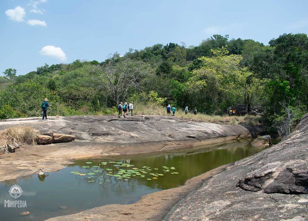 The descent was quicker, though no less hot. By late afternoon we were back at the base, dusty, weary, and desperate for relief. That came in the form of Navagiriya Wewa – cool, glassy waters that invited us in. We slipped gratefully into the lake, laughing, floating, feeling the heat dissolve in its embrace.