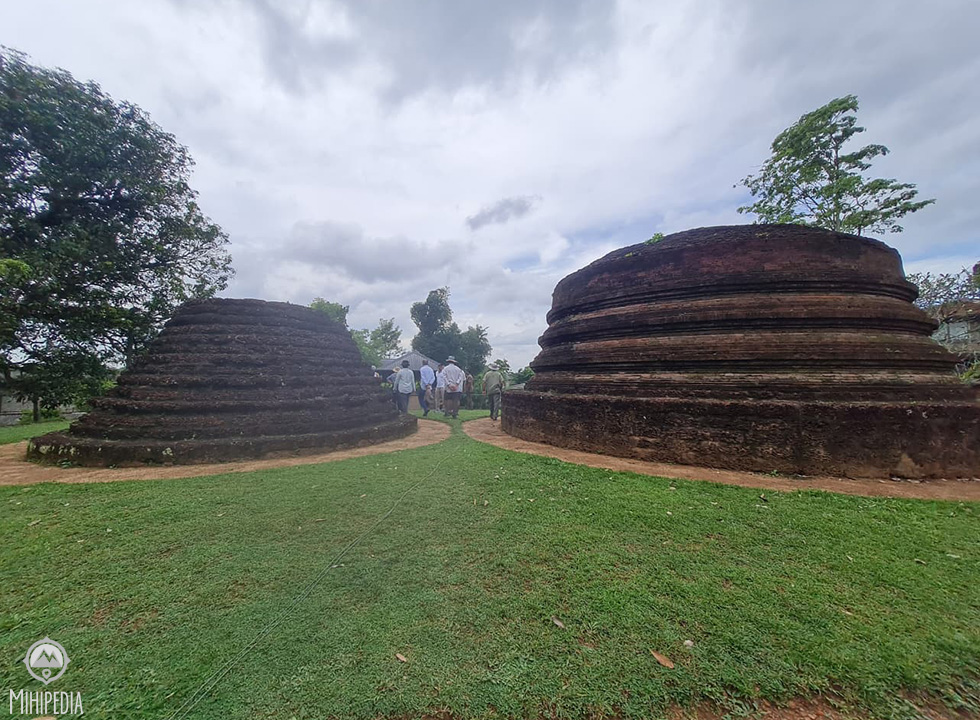 Our journey takes us to Veherakanda, where grassy mounds hide the remnants of ancient stupas, and home to the Kotte Raja Maha Viharaya. This site features two ancient burial tombs, believed to belong to unknown royals or monks from the Kotte era. The stupas stand on a platform built of laterite, the smaller one entirely while the larger has a laterite base topped with brickwork. Measuring 21 feet (6.4 m) and 30 feet (9 m) in diameter, these structures date back to the Kotte Period. Traces of an image house and other monastic ruins nearby suggest that this area was once part of a large and thriving monastery, offering a quiet glimpse into the spiritual life of the ancient capital.