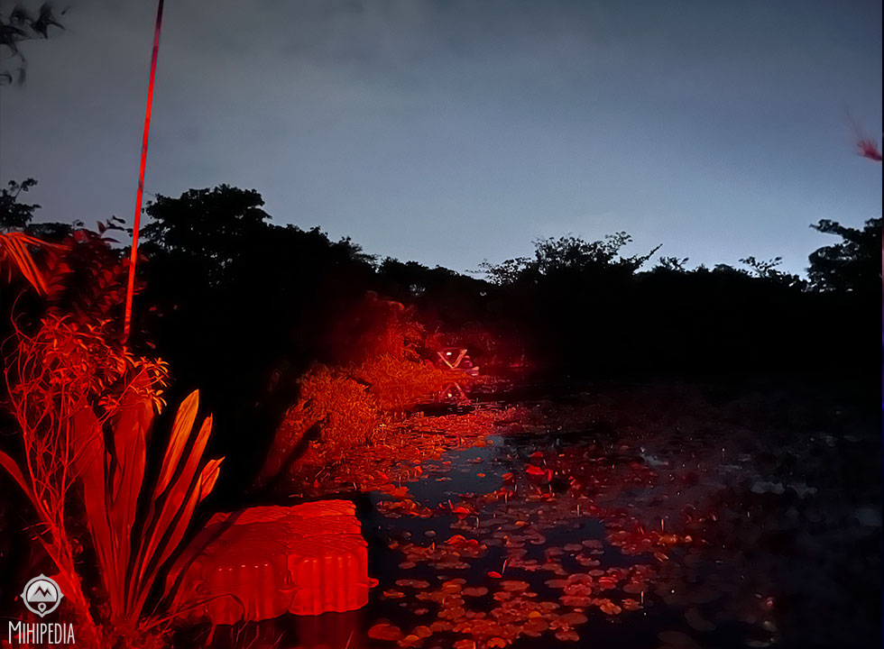 Walking along the wooden boardwalks, our torches swept across the reeds and water. Every few steps revealed something new. Herons stood motionless in the shallows, perfectly patient hunters waiting for a careless fish.